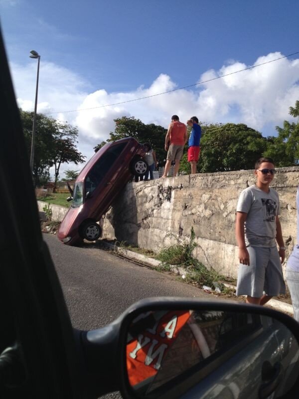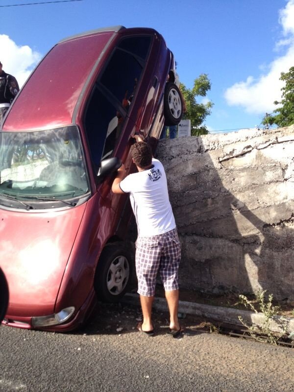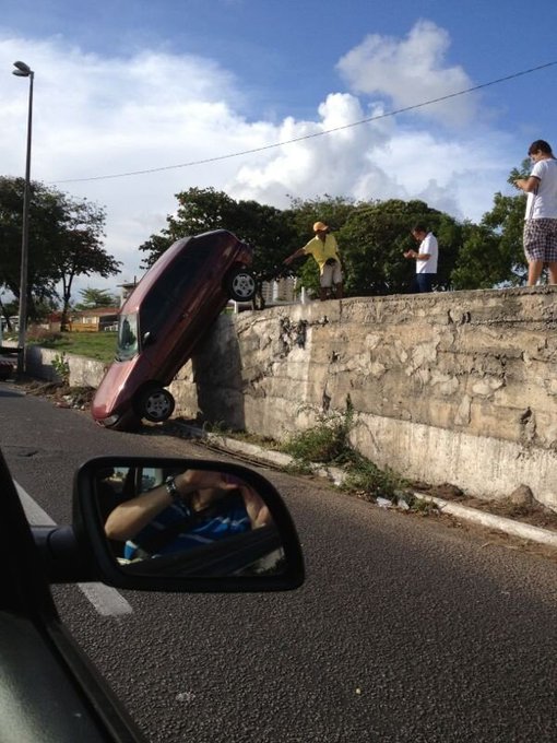 Um veículo caiu da rua Tiago Avíco bairro Candelária sobre a av. da Integração.