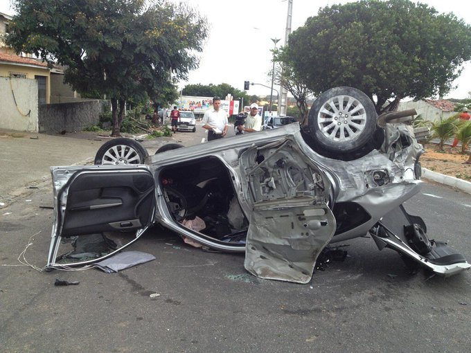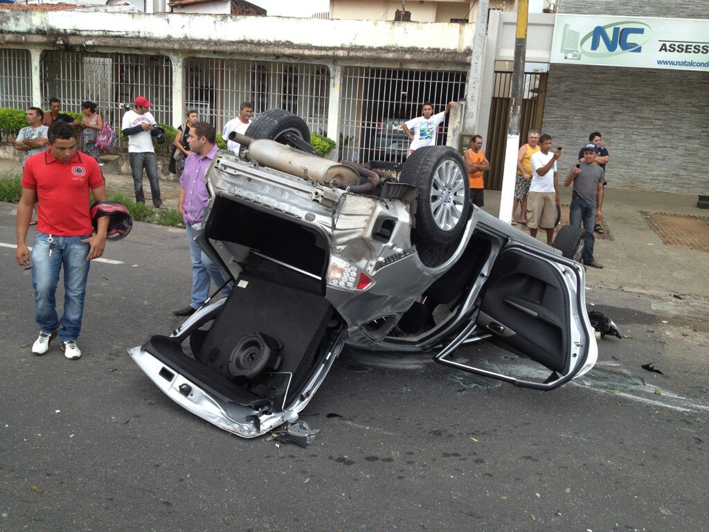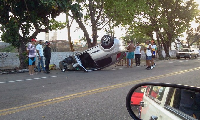 Por voltas 05h desta manhã um veículo modelo Subaru capotou na av. Prudente de Morais no bairro Candelária.