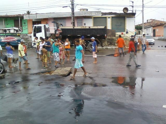 | Um protesto interdita neste momento a av. Industrial João Francisco da Mota (KM 6) no bairro Nazaré. O protesto é por conta dos buracos e de ligações clandestinas de esgoto. Fotos SABRINA KALAHARI |