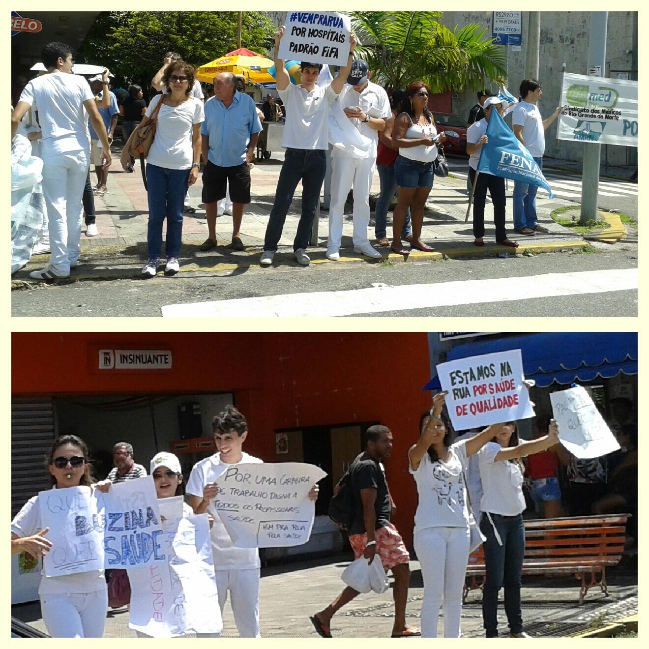 Pequena manifestação dos servidores da saúde na av. Rio Branco. Manifestantes ocupam apenas a calçada e sem prejuízos ao trânsito Foto: Carol Delgas para o Via Certa Natal