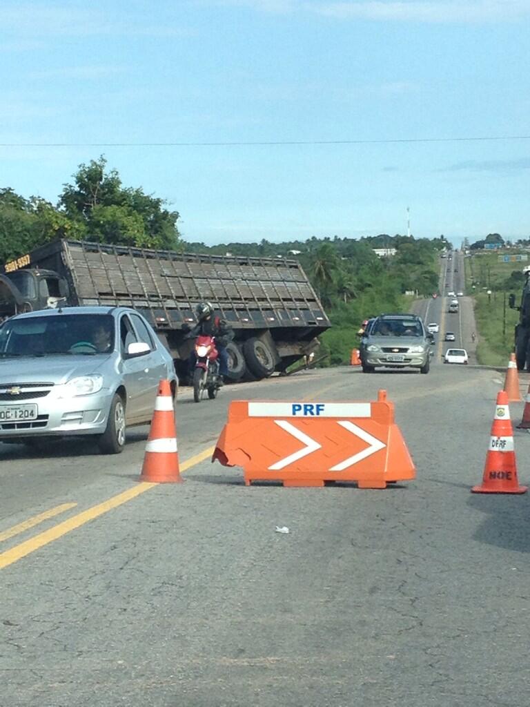 No acidente um boi morreu e o prejuízo calculado com o acidente chega aos 20 mil reais segundo o motorista do caminhão.
