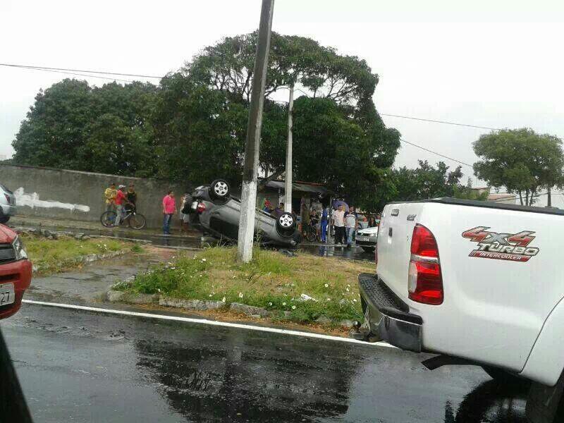 Por volta das 10h30 uma colisão entre dois veículos resultou no capotamento de um dos carros envolvidos no acidente na avenida das Alagoas no bairro Neópolis.