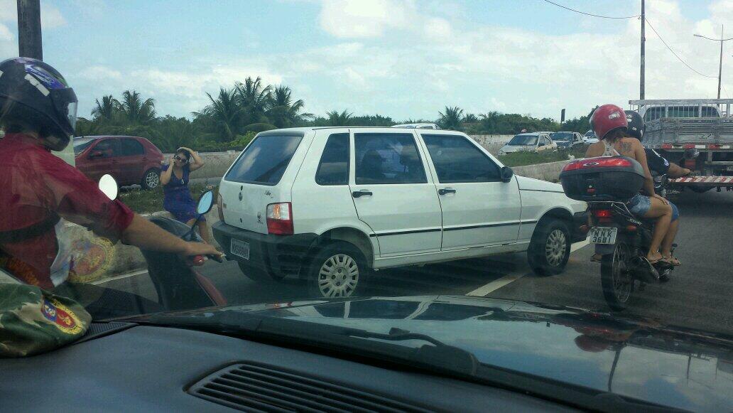 Página inicialNOTÍCIAS Colisão na ponte do Igapó causa retenção no sentido centro RedaçãoVia Certa Natal sábado, setembro 28, 2013 Um ônibus e um carro colidiram na ponte de Igapó deixando o trânsito lento no sentido centro. Fotos/reportagem Wendel Jefferson Foto: Douglas Coé Tags NOTÍCIAS Facebook Twitter