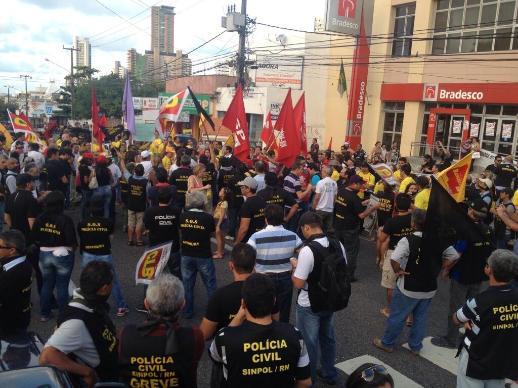 O grevistas da Polícia Civil e ITEP promoveram há poucos minutos uma passeata na av. Rio Branco região central da capital.
