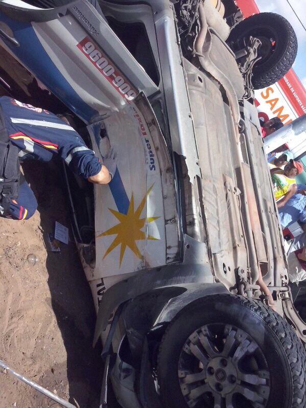 Um carro capotou na av. Prudente de Morais x av. Antônio Basílio.