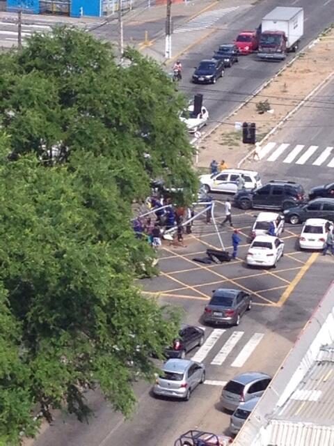 Um semáforo foi derrubado e as vítima um taxista e um passageiros ficaram presos às ferragens. Equipes de resgate do SAMU e do Corpo de Bombeiros prestaram atendimento às vítimas que foram encaminhadas em estado estável de saúde para o hospital Clóvis Sarinho.
