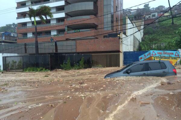 Carros estão sendo engolidos pela lama que desce do morro de Mãe Luiza. Av. Governador Silvio Pedroza interditada.