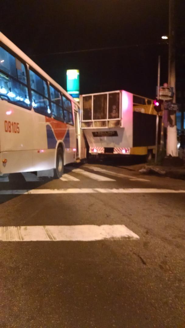 Ônibus e carro de som colidiram nesta noite na av, Bernardo Vieira x av. Manoel Miranda. Por conta do acidente que ocorreu às 20 horas foi formado um enorme congestionamento no trecho